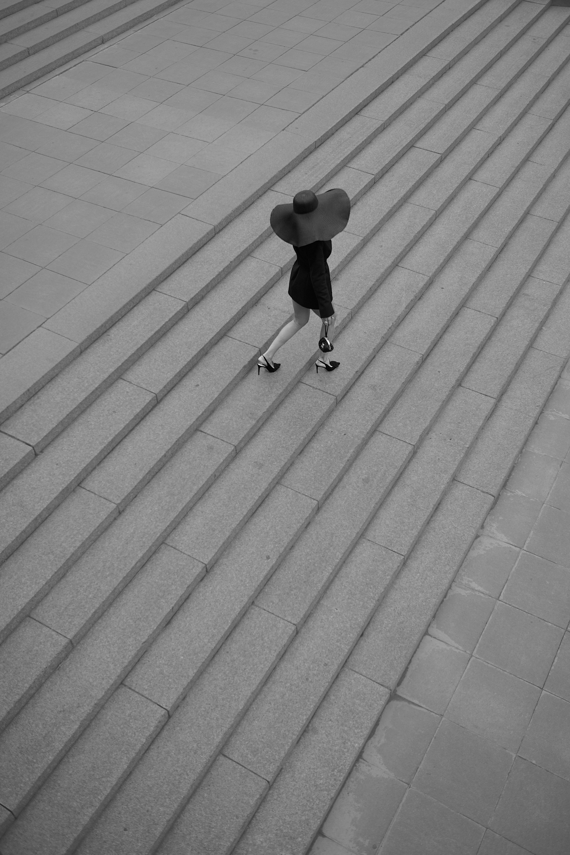 Девушка в черном платье на фоне городских улиц